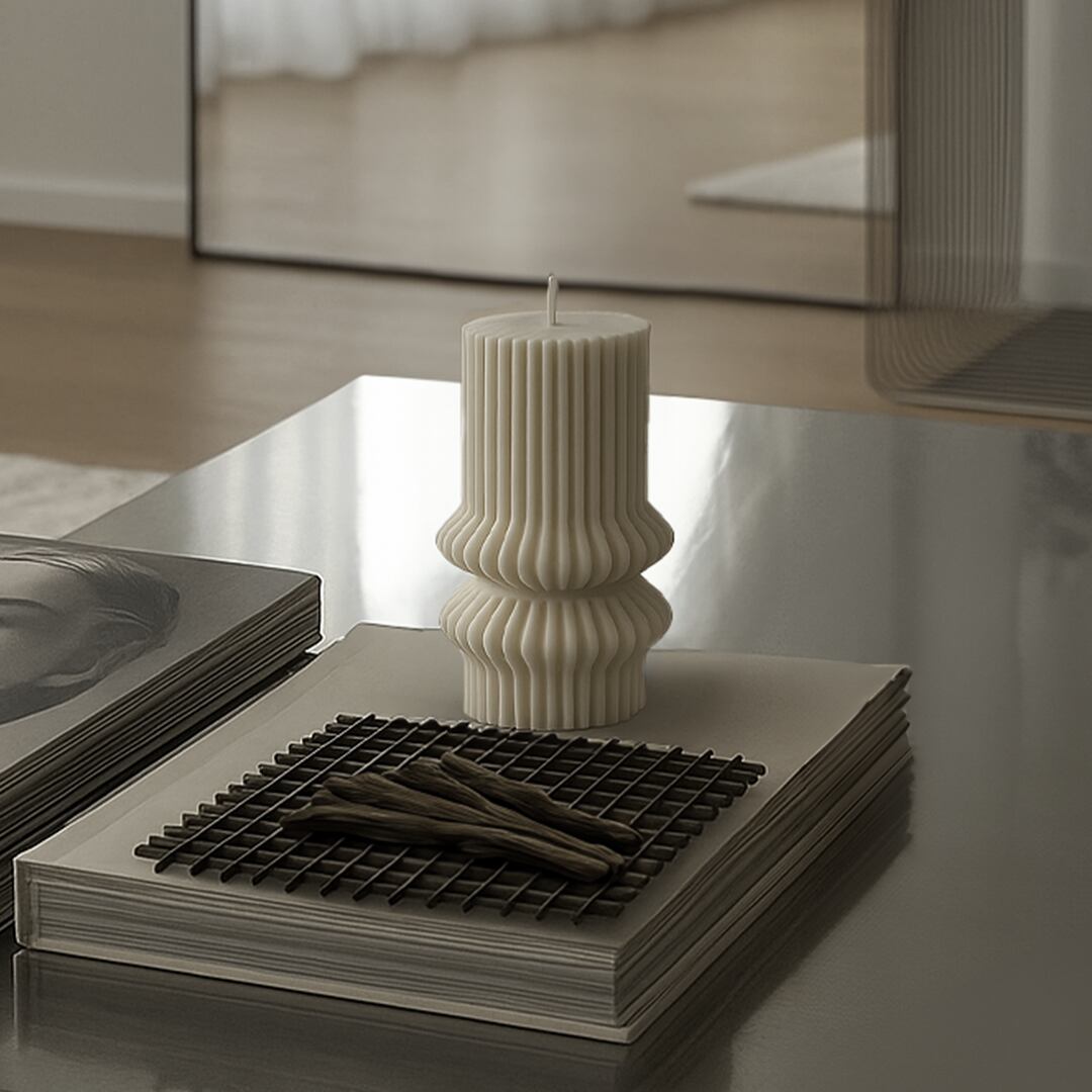 キャンドルのデザインにより、燃焼時には不規則に溶ける場合がございます。燃焼中は本体の周りにワックスが滴ることがありますので、耐熱性のお皿などの上でご使用ください。