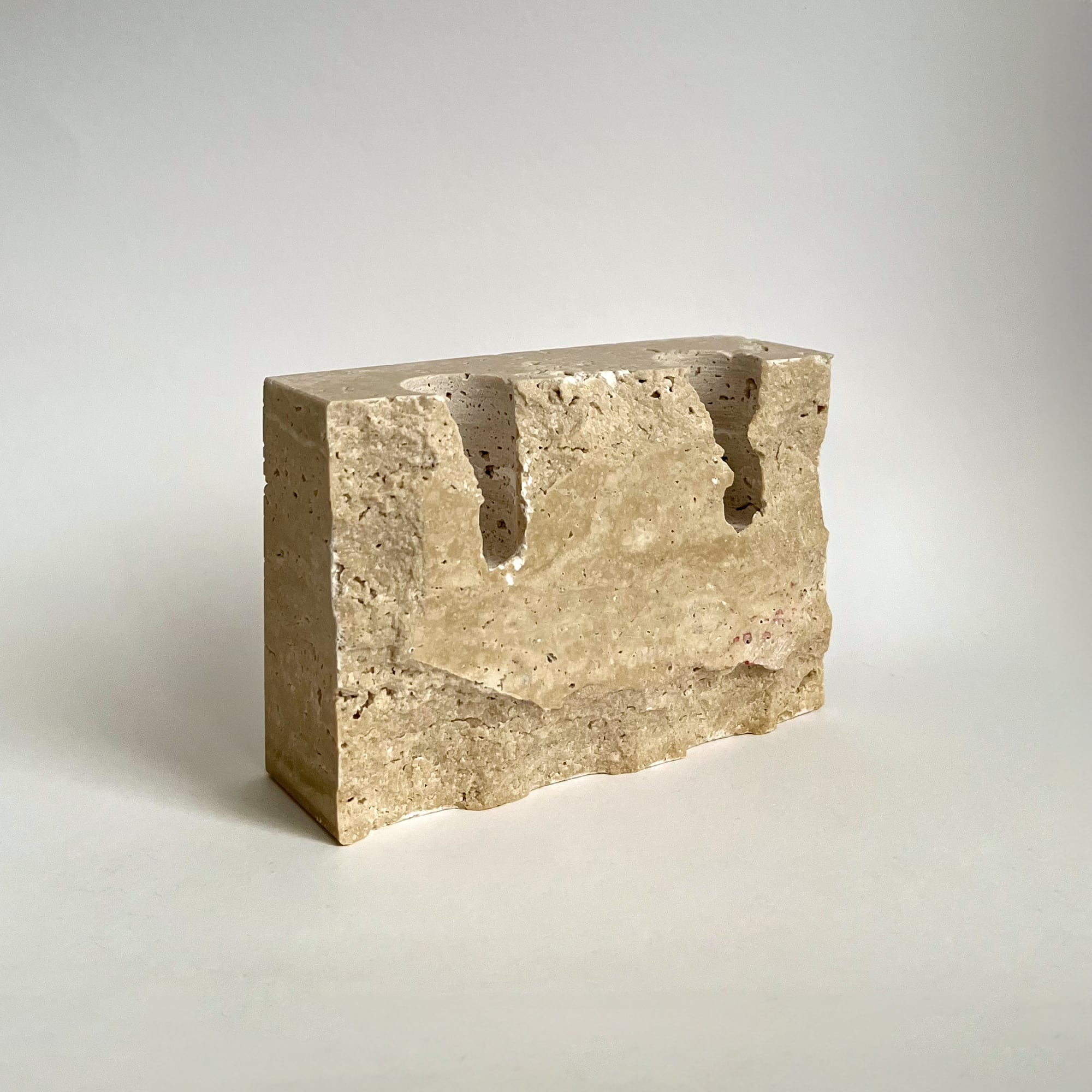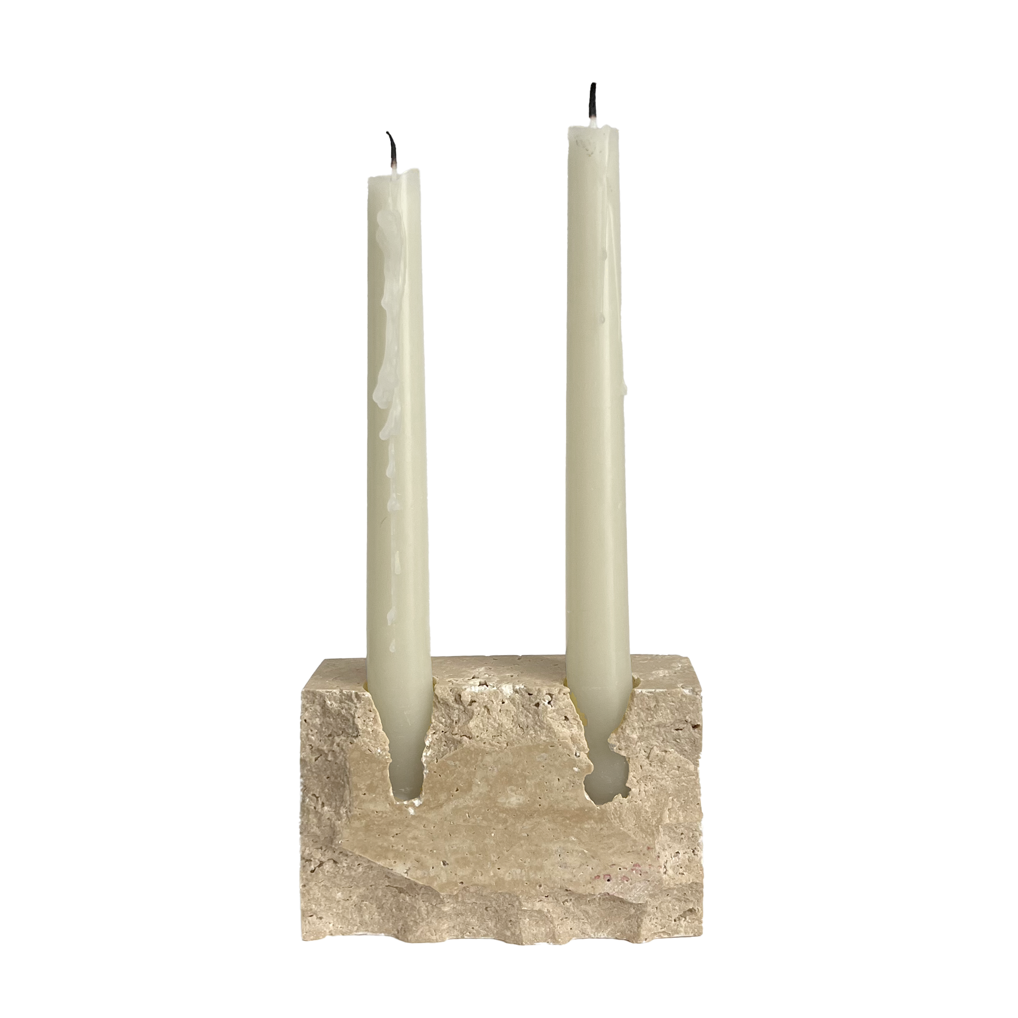 天然の大理石から削り出した、重厚感のあるキャンドルスタンド。石そのものの質感とミニマルなフォルムが、空間に静かな存在感をもたらします。テーパーキャンドルを2本美しく並べ、灯りとともに奥行きのある陰影を演出します。直径約2.2〜2.5cmのキャンドルに適したサイズです。